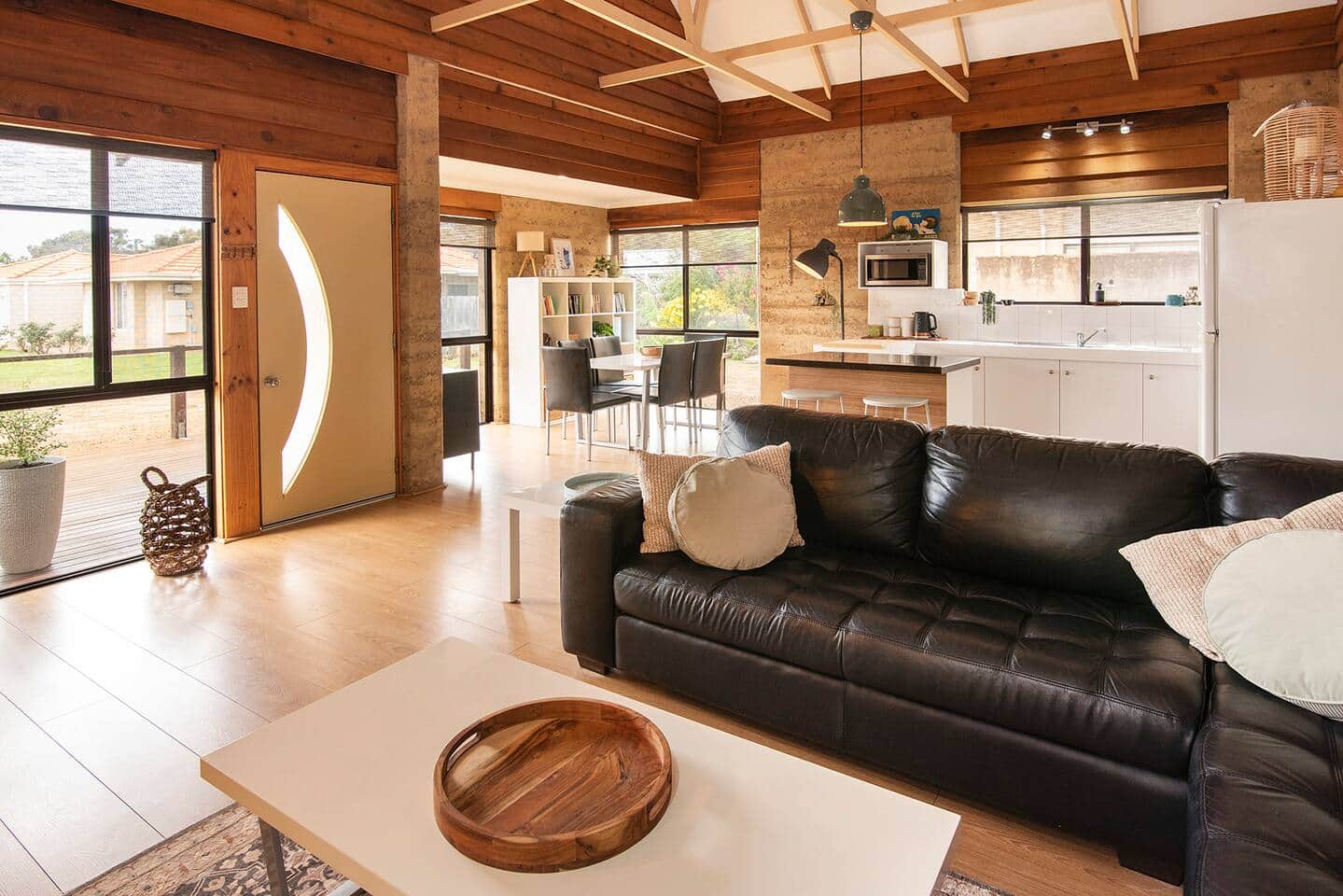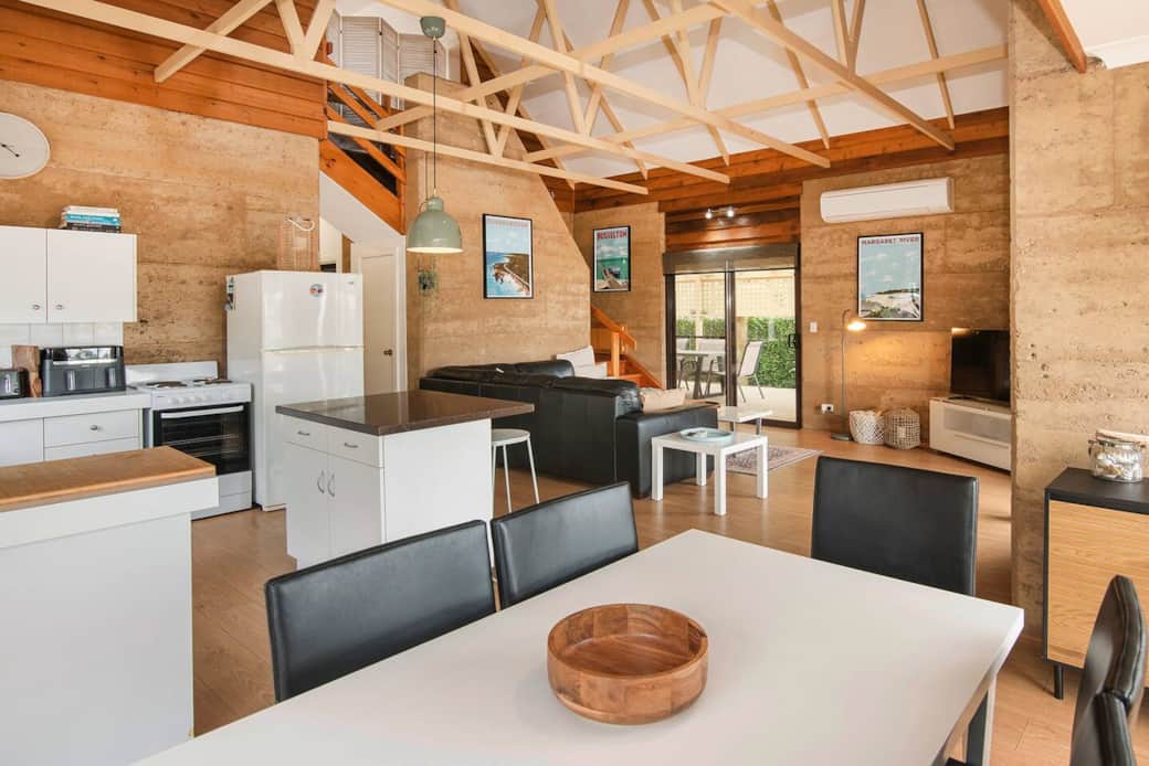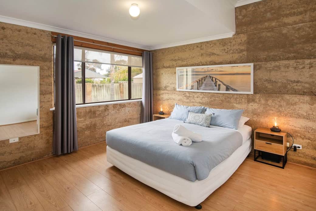 Just 450m from the white sands of Geographe Bay and a short walk to Dunsborough’s cafés, bars, and shops, this charming rammed-earth villa offers relaxed coastal living. Featuring cathedral timber ceilings, open-plan kitchen and living, and sleeping up to 6 guests, enjoy BBQs in the private alfresco, morning coffee on the deck, and sunset strolls by the bay — the perfect Down South getaway. Welcome to your Classic Villa in the heart of Dunsborough — where character, comfort, and location come together for the perfect coastal getaway. Only 450 meters from the pristine turquoise waters of Geographe Bay, you can spend your days swimming, fishing, crabbing, or simply relaxing on the beach. When it’s time to dine out, walk to The Bamboo Spice Thai Restaurant, The Pour House Bar & Kitchen, or local cafés like The Local, La Lah, and Sora Café. The Dunsborough CBD is just 650 meters away, with boutique shops, bars, bakeries, and supermarkets right on your doorstep — no car required. Inside, the two-Storey home radiates warmth and charm with rammed-earth walls, cathedral-style timber ceilings, and beautiful natural light. The open-plan living, dining, and kitchen area creates a relaxed atmosphere for family and friends to gather. The kitchen features a black-stone island bench, plenty of cupboard space, and all the essentials for easy home cooking. Sleeping up to 6 guests, the villa includes two queen bedrooms on the ground floor and an open-loft upper bedroom with a queen bed and single bed — perfect for kids or another couple. The stylish, renovated bathroom and full laundry with separate WC add to the home’s convenience. Outdoors, enjoy Dunsborough’s famous coastal lifestyle — host BBQs under the covered, semi-enclosed alfresco area or unwind with a glass of local Margaret River wine. The front timber-decked veranda is ideal for your morning coffee, while the secure backyard offers space for kids and pets to play safely. With reverse-cycle air-conditioning, insulated roofing, a new hot-water system, and ample parking, this villa provides a peaceful, easy-care base for your Down South escape. ✨ Key Features 🌊 450 m to Geographe Bay and short walk to Dunsborough CBD 🛏 Sleeps 6: 3 bedrooms (3 queen beds + 1 single in loft) 🍳 Fully equipped kitchen with island bench & black-stone top 🍷 Covered alfresco with BBQ + front deck for morning coffee 🐾 Fully fenced, kid- and pet-friendly backyard ❄️ Reverse-cycle AC + insulated roofing for comfort year-round 🚗 Carport parking