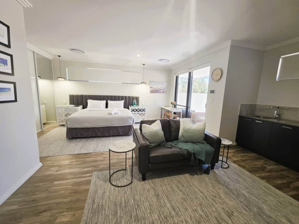 Just a short stroll from the pristine shores of Abbey Beach, this modern studio offers comfort and coastal charm. Relax in the king bed, unwind in the deep bathtub, and enjoy the convenience of a well-equipped kitchenette. Tucked away in a quiet cul-de-sac at 4 Barkle Close, you’re moments from the beach, Busselton Jetty, and local cafés. Perfect for couples or solo travellers seeking a peaceful beachside escape in the heart of the South West.